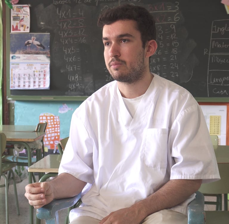 El segundo turno de grabación estuvo dedicado a Pablo Ortega, un joven enfermero cuya labor profesional va de la mano con un fuerte compromiso social. Inspirado por los valores que le inculcaron sus padres, Ortega vive su fe de manera activa y la refleja en su día a día, tanto en el trabajo como en su entorno personal.